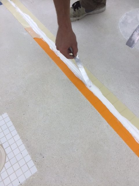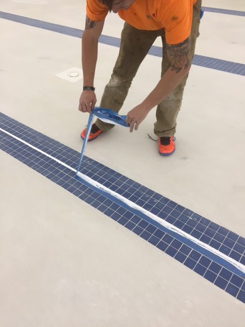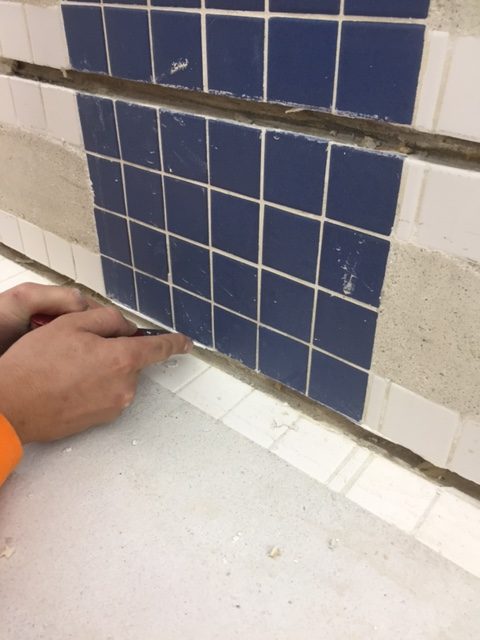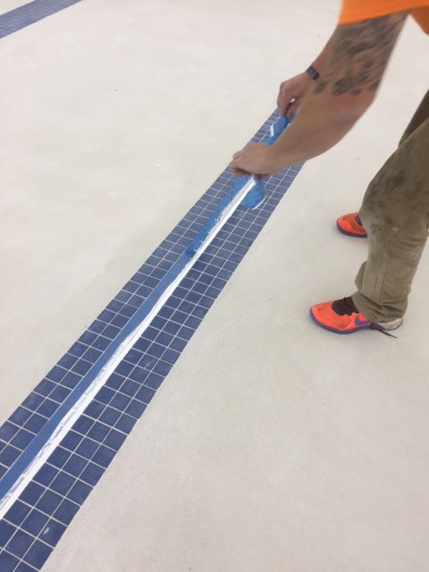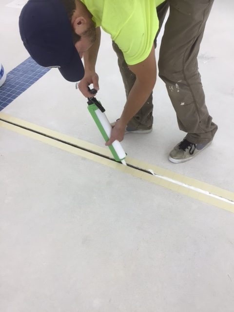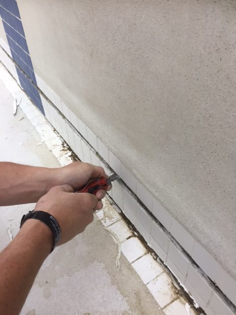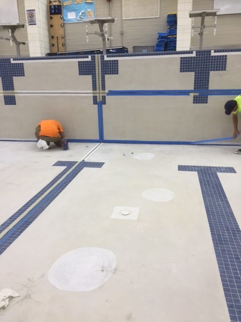 An inferior joint sealant was removed from this large swim center pool and replaced with DECK-O-SEAL GUN GRADE.